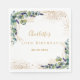 För en elegant 40:e (eller någon ålder) födelsedagsfest. En vit chic bakgrund. Dekorerad med grönt vattenfärgade eukalyptus löv, sprickor, grå, faux guld löv och guldfaux glitter stoft. Anpassa och lägg till en namn-ålder 40 och ett datum. Golden brev.
