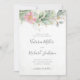 Vacker Spara datumkortet med rosa blommigt vattenfärgen eukalyptus och guld löv med modernt handskript.
