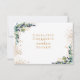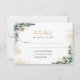 En vit bakgrund som dekoreras med eukalyptus grey och golden löv och faux guld glitter droppar. Anpassa och lägg till svaret efter datum och ditt namn.