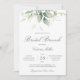 Snygg brunch-inbjudan från möhippa med vattenfärgad eukalyptus och guld löv med elegant-kalligrafi.