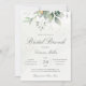 Snygg brunch-inbjudan från möhippa med vattenfärgad eukalyptus och guld löv med elegant-kalligrafi.