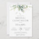 Vackra möhippans luncheon-inbjudan med vattenfärgad eukalyptus och guld löv.