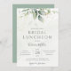 Vackra möhippans luncheon-inbjudan med vattenfärgad eukalyptus och guld löv.