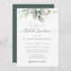 Vackra möhippans luncheon-inbjudan med vattenfärgad eukalyptus och guld löv.