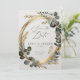 Det här bröllop spara datum-kortet har elegant eucalyptus greenery och guld löv. Utformningen innehåller snyggtens skripttext för en sofistikerad beröring. Det är perfekt för par att tittar ett vackert datumkort.
