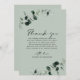 Eucalyptus Greenery Modern Calligraphy Sage Bröllop, tack... Tack vare vårt moderna eucalyptus bröllop-eucalyptus-kort har du grönt och Eucalyptus-löv som är skalad och som har ett stort tack och namnteckning på en känslig grönt. All exempeltext (förutom kalligrafigrafik) kan enkelt revideras med egen information om anpassningsmallen. En del av en bröllop-svit med samordningstillbehör inom samma eukalyptus-tema.