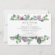 Modern och elegant blommigt Eucalyptus Grey Botanical Script Inbjudningskort för möhippan kan du redigera den moderna populära texten helt med dina duschdetaljer genom att klicka på knappen "Personalisera". Modern botanisk löv i grönt och lila på vit bakgrund