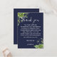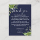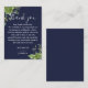 En elegant eukalyptus grey botanical navy blue bröllop tackar dig för mottagningskort, personlig med ett speciellt budskap och bruden och brudgummen i namn. Designad av Thisisnotme©
