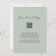 Eucalyptus Greenery Chic Modern Calligraphy QR Code OSA Sage Wedding Investigation ... Vår "allt-i-ett" botaniska bröllopsinbjudan har elegant eucalyptus grenar med sage och emerald-hued-löv på en ljusskygg bakgrund. Chic modern kalligrafi visningar texten för "Bröllop i", "och" samt "mottagning att följa" tillsammans med elegant-serif-typografi för att texten ska bli personlig. Återkopplingen av inbjudan visningar bröllop webbplats QR-kod och webbplatsens URL-adress, vilket gör att dina inbjudna lätt kan OSA online och visa all information som vanligtvis skickas i ett bröllop-paket. Exemplet QR-kodgrafik och all exempeltext (bortsett från det grafiska kalligrafin inslag) kan enkelt revideras med egna uppgifter om anpassningsmallen. Denna moderna inbjudan från stil är både tidsbesparande och elegant, skapat särskilt för blivande upptagna brider.