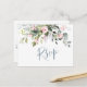 Skapa ditt eget responskort med den här "Eucalyptus Greenery Watercolor Bröllop OSA Postcard"-mallen för att matcha bröllop stil, färg och temat. Kontakta mig om du behöver hjälp eller matchande artiklar.