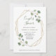 Denna minimalistiska inbjudan och inbjudan till trendig par möhippa har enkla och romantiska vattenfärgseukalyptus löv och löv på ett faux guld geometric center ram.