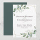 Använd den romantiska känslan för bröllopsdagen med den här moderna designen med vattenfärgade eukalyptus löv.