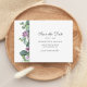 Skriptet Eucalyptus Greenery Blommigt sparar datumanteckningskortet. Med lila- och grönt-blomning med skripttypografi.