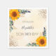 En kapkin för en gigantisk och glamorös 50:e (eller någon ålder) födelsedagsfest. En snyggt guldfärgad bakgrund som dekoreras med solblommor, eukalyptus, grönt, guldblad och faux-damm från guld glitter. Anpassa och lägg till datum, namn och ålder. Namn är skrivet med ett modernt handskript i stil.