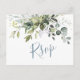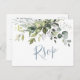 Skapa ditt eget responskort med den här "Eucalyptus Greenery Watercolor Bröllop OSA Postcard"-mallen för att matcha bröllop stil, färg och temat. Kontakta mig om du behöver hjälp eller matchande artiklar.