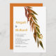 Eucalyptus gren under den höst färger höstens bröllopsinbjudan. En fin design för ditt hövbröllop med en kaskad gren av eukalyptus löv. Baksidan är av bränd orange färg.
