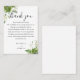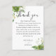 Ett elegant eucalyptus grönska botaniskt bröllop tack mottagande kort, personifierat med ett speciellt meddelande och brudens och brudgummens namn. Designad av Thisisnotme©