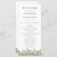Eucalyptus Grönt Vattenfärg & Guld Bröllopsprogram Meny