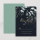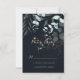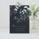Dessa eucalyptus guld blommigt kalligrafi blå OSA kort är perfekt för ett rustiskt bröllop. Den här konstnärliga utformningen har handritad blommigt från guld och grönt av eukalyptus i en mörk blått bakgrund, som inspirerar naturskönheten.