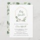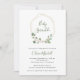 Det här trendiget och snyggt baby sprinkle-inbjudan har en andedräkt av grönt, vattenfärgen eucalyptus löv och ett faux guld geometriskt ram på vit bakgrund. Det är könsneutralt, så perfekt för antingen en flicka eller en pojke.