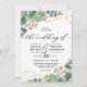 Det här är en vacker bröllopsinbjudan med eukalyptus-blomma med guld geometrisk form.