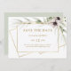 Den här geometriska besparingen av eukalyptus guld är perfekten för din elegant Boho bröllop. Det är designat med enkla bohemiska vita och lila anemonblommor, förenklade grönt löv för vattenfärgsfärgning och modern guld-folie vinterramar. Med en kombination av vit blommigt och ren, rustik grey, skapar du säkert dina drömmar.