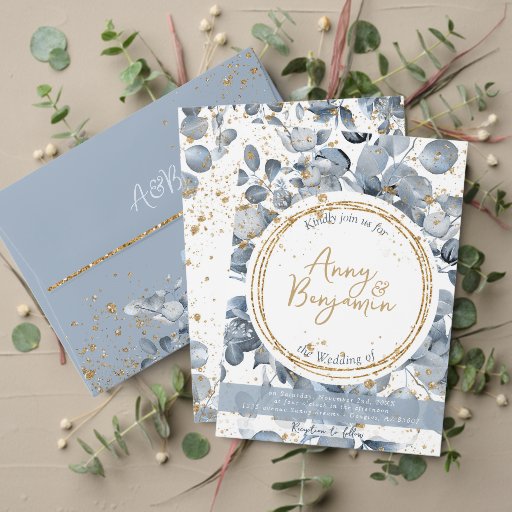 Eucalyptus Guld Glitter - Dusty Blue Inbjudan 2