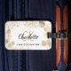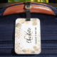 En vit snyggt bakgrund. Dekorerad med guldeukalyptus foliage och faux guld glitter stoft. Anpassa och lägg till ditt första namn, monogram initialer och fullt namn. Namn är skrivet med ett handskript i stil.