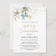 Allmän könsneutral första inbjudan till kommissionen. Denna utformning illustrerar eucalyptus foliage och guld löv i vattenfärgen stil med faux guld kor. På överdelen av kortet - grönt och gyllene effektkonfetti.