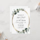 Eucalyptus Guld Metallic allt i en bröllopsinbjudan... Vår "All in One"-luxe botaniska bröllopsinbjudan har en guld metallisk oval ram som är förskönad med dammig grönt och emerald-hued eucalyptus löv skapa ett naturligt tittar gräns för inbjudningstexten i. Kortets baksida innehåller alla detaljer som du normalt skulle se på separat biet av papper i bröllop-paketet. Den här moderna bröllopsinbjudan från stil var designad för att vara både elegant- och budgetmedveten.. för att inte nämna tidsbesparing. På baksidan finns det också en QR-kodgrafikmall som du kan ersätta med din egen kod (eller ta bort om du inte tänker använda använda ett). All exempeltext kan enkelt revideras med egen information om anpassningsmallen.