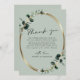 Eucalyptus Guld Modern Calligraphy Sage Grönt Bröllop - tack... Tack vare vårt moderna eucalyptus bröllop-kort för kalligrafi har vi en guld metallisk oval ram som är förskönad med framväxande eukalyptus löv som gränsar till ditt tack, och brud och groom namnteckning på en sage grönt bakgrund. Kortets baksida är samma ljusskena färg som visas i själva löven. All exempeltext (förutom kalligrafigrafik) kan enkelt revideras med egen information om anpassningsmallen. En del av en bröllop-svit med samordnande tillbehör inom samma tema för ovaler för eukalyptus guld.