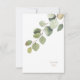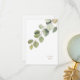 Tack för ditt kort, bröllop. Texten Eucalyptus Foliage Guld. .Meddelande på baksidan. Vit bakgrund.