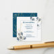 Enkla och stilrena, dessa bröllopsinbjudningskort är det perfekta sättet att lägga till ytterligare information till dina bröllopsgäster när du skickar ut bröllopsinbjudningar. Funktioner handmålade blå akvarell-eukalyptusgrenar med gyllene blad bakom en vit och blå kantlåda. Baksidan är täckt med en blå bakgrund och det gyllene bladverket. All blå text är anpassningsbar.