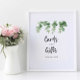 Tecknet "Kort och gåvor" eller poster till Bröllopsdag, med vattenfärgad eucalyptus foliage design.