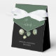 En förinställningsruta för svartvit och oliv-/eukalyptus-grönt med vit ribbon. Anpassadets text (namn och datum) fram och tillbaka. Ett Eucaluptus gren med skriptteckensnittet med glyf är inslag på två färgaders bakgrund. Modern och minimalistisk med samma designtema som resten av samlingen. Blanda och matcha för din speciella dag.