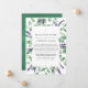 Grönt blad silver dollar lavendel reducerad bröllops inbjudan. Under dessa osäkra tider kan det hända att man tvingas hålla ett mindre bröllop än planerat. Detta bröllopskort tar bort det pinsamma och befriar dig från en tyngd! Du kan dessutom ge dina gäster möjlighet att delta i en virtuell vigsel.