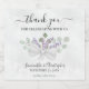 Dessa vackra mousserande vin-märken är perfekt för att tacka speciella gäster från bröllop eller medlemmar av brudens sida. eller för din repetitionsmiddag, möhippa eller mottagning. Den roustiska boho-chicen har ett kluster av handmålade vattenfärgsprickor av eukalyptus löv och lavendelblommor i skuggor av grönt och lätt lila. Texten lyder Tack för att fira med oss. Det finns utrymme för namn och bröllop-datumet.