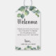 Rustik och chic water color silver dollareucalyptus förgrenar bröllopets välkomstpåsbrickor. Anpassa och anpassa teckensnittet stil, färg och storlekt.