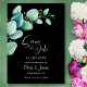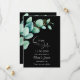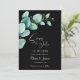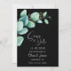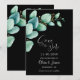 Informera dina vänner och nära och kära om ditt framtida bröllop-datum med den här eleganten svart spara-till-datum med vattenfärgsfärgade grönt eucalyptus lövs.