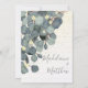 En enkel gren av eukalyptus löv med blommor på en skorstensmur. Elegant och snyggt bröllop anpassningsbar inbjudan. Ändra enkelt informationen till ditt eget anpassad design.