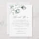 Skicka ett tack med det här anpassadet, tack tack för ditt kort. Den har vattenfärgade illustrationer av dammig grönt eucalyptus löv och ett vismiskt skript. Anpassa genom att lägga till information. Det här eucalyptus-kortet är perfekt för bröllop, födelsedagar och andra händelser.