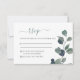 OSA med naturlig elegans! Vårt Eucalyptus Lövs Bröllop OSA Card erbjuder en perfekt blandning av botanisk skönhet och funktionell charm. Med delikata eukalyptus-accenter, det här kortet inbjudan dina gäster att svara med nåd och tillför en aning sofistikerad sofistikering till din bröllop-stationär ensemble.