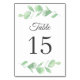Bordsnummer med eucalyptus löv för bröllop firande. Utformningen upprepas på baksidan.