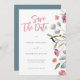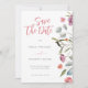 Färgblommor blandade med eukalyptus löv skapar en vacker blommigt gräns för det här anpassadet Spara bröllopsinbjudan. Den här inbjudan är mångsidig och kan användas för alla inbjudningar genom att ändra typografi.