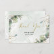 Eucalyptus lämnar och grönt med gyllene accenter på en grönt med mjuk blek och vattenfärg med bakgrunden bröllop - Tack - dina kort. Ord "Tack" är i ett vackert kalligrafteckensnitt.