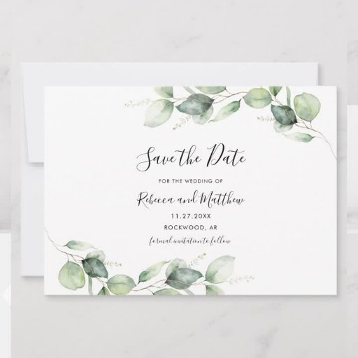 TIP: Matchning av tillgängliga objekt i den här samlingen. Vår botaniska eucalyptus bröllop-samling har vattenfärgat löv och modern typografi i mörk grått-text. Med användan "Anpassa" kan du ändra ordning på och formatera stil och textplacering. Det skulle lätt kunna användas för andra speciella evenemang som årsdagar, babydusch, födelsedagsfest, nyfödd bebis, döpning och mycket annat.