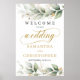 Eucalyptus löv guld boho bröllop välkomstskylt poster