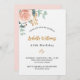 En inbjudan till elegant för en 40:e (eller någon ålder) födelsedagsfest. En vit chic bakgrund. Dekorerad med en ro guld och en rosa vattenfärgad blomma, blommigt, grönt eucalyptus löv, spriter, grönsak och faux ro sprig. Personalisera och närmare uppgifter om namn och party. Svarta och gyllene brev. Namn är skrivet med ett modernt handskript i stil. Bakåt: ro guld, färg.