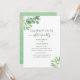 Omfamna enkelhet och elegans med vår vita och gröna 'Happily Ever After' bröllopsinbjudan. Med akvarell-eukalyptusgrönska och modern kalligrafiskrift är det den perfekta kombinationen av naturinspirerad skönhet och modern charm för din fest.