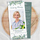 Modern eukalyptus Sympathy Funeral Prayer Cards. Det här enkla minneskortet för böner i elegant har en modern ekodesign för eukalyptus. "In Loving Memory" Anpassa det här minneskortet för begravning med dina nära foto, namn & data och känslor. Tillbaka ~ 'Miss Me' Dikt, som kan vara personlig, var snäll och nå ut om du vill ha en annan design än en specifik dikt. Det här minneskortet kommer att vara en välkänd keepé, för begravningstjänster och firande i livet. COPYRIGHT © 2020 Judy Burrows, Black Hund Art - Med alla Höger reserverade. Eucalyptus Photo Memorial Funeral Prayer Card